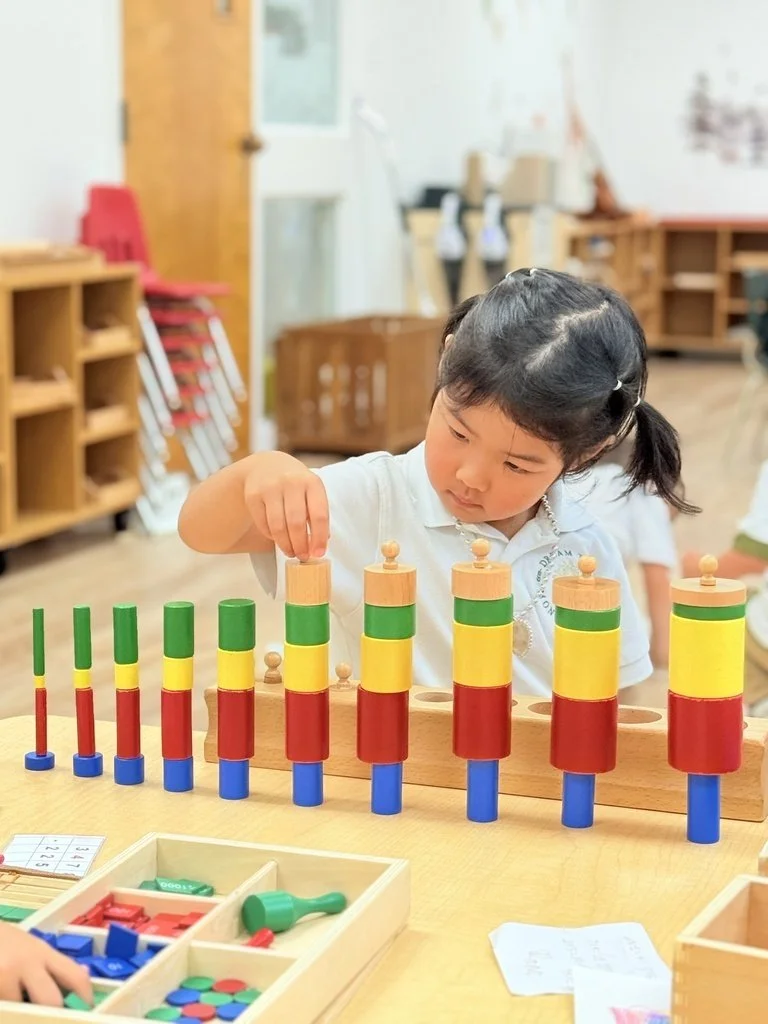 Through practical life, sensorial, daily group language lessons, and movement activities, children build confidence, independence, coordination, and curiosity. Hands-on learning helps them develop essential life skills and a strong foundation for future academic growth.